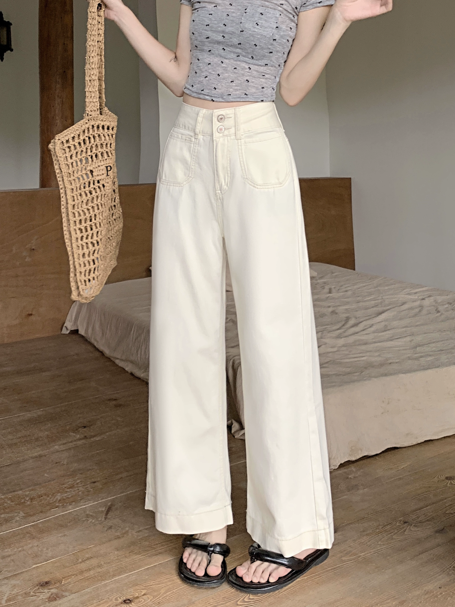 بنطال جينز نسائي بسيط بزرين وواسع الساق