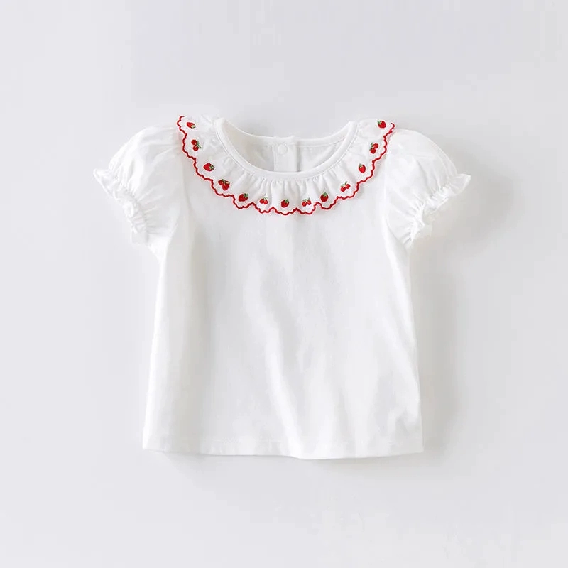 تي شيرت للفتيات بأكمام قصيرة ورقيق وياقة دمية عصرية للأطفال