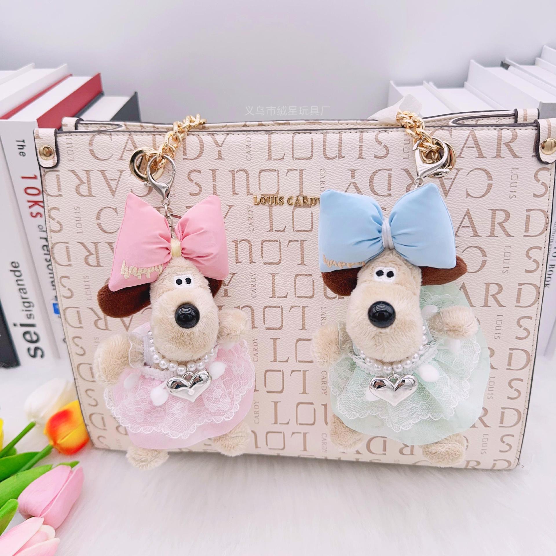 دمية قطيفة جديدة على شكل كلب على شكل كلب كرتوني، فستان لطيف على شكل كلب، حقيبة سلسلة مفاتيح، زينة لطيفة