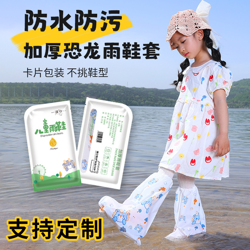 المتاح الأطفال غطاء حذاء المطر ديناصور الكرتون المطبوعة الأطفال غطاء للقدم المحمولة منفصلة التعبئة والتغليف غطاء حذاء مقاوم للماء