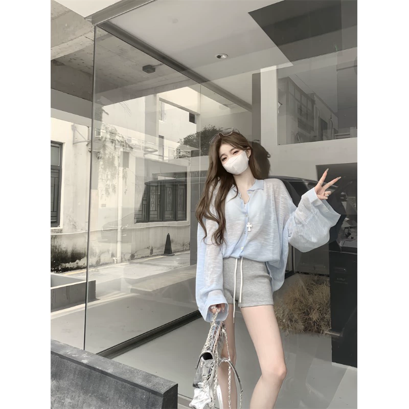 سترة واقية من الشمس بسحاب وغطاء للرأس وشفافة على الطراز الكوري الجديد للصيف سترة فضفاضة غير رسمية للتخسيس بأكمام طويلة سترة نسائية رفيعة