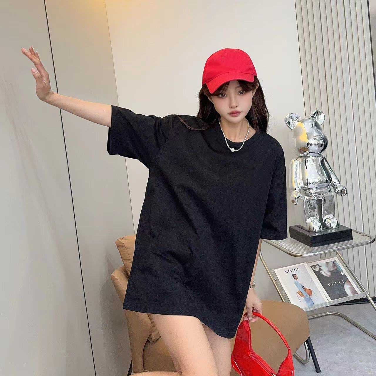 24 تي شيرت صيفي جديد للرجال والنساء من القطن باللونين الأبيض والأسود فضفاض كسول ومظهر نحيف 051018