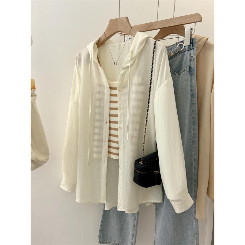 سترة ريل شوت للحماية من الشمس للنساء معطف رقيق بقلنسوة صغير 2024 صيفي فضفاض غير رسمي الكل مباراة سترة