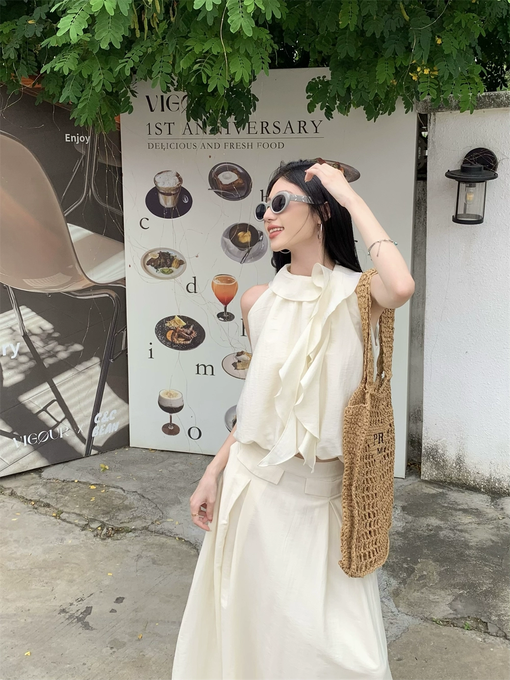 تنورة مظلة متأرجحة كبيرة مكشكشة بالرياح اللطيفة مكونة من قطعتين برقبة رسن