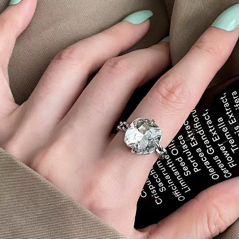 حلقة زركون مربعة لامعة للنساء الرجعية شخصية الأزياء الهندسية غير النظامية S925 الفضة حلقة الحلقة حلقة إصبع