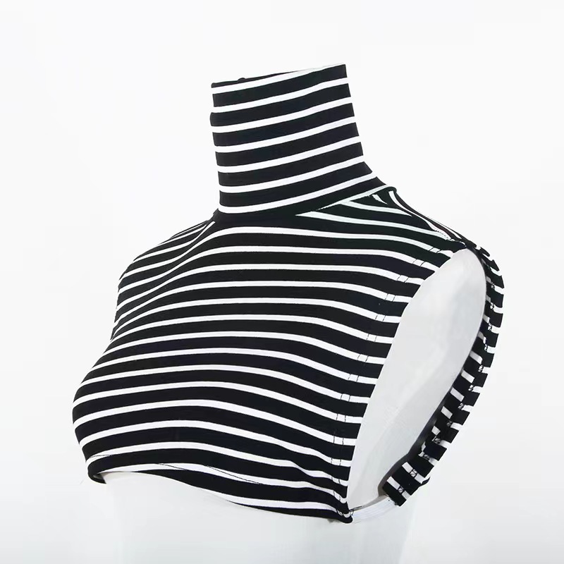 ياقة مخططة شبه عالية، ياقة وهمية مرنة عالية، قاعدة من القطن للنساء، ياقة مزخرفة، سترة داخلية دافئة على الطراز الأجنبي في الخريف والشتاء