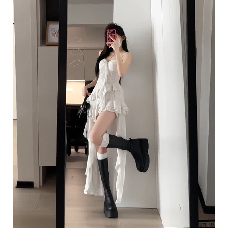 صيف جديد وصول النمط الفرنسي غير النظامية تكدرت حمالة فستان بكتافة المرأة العصرية الأنيقة التخسيس كعكة فستان العصرية