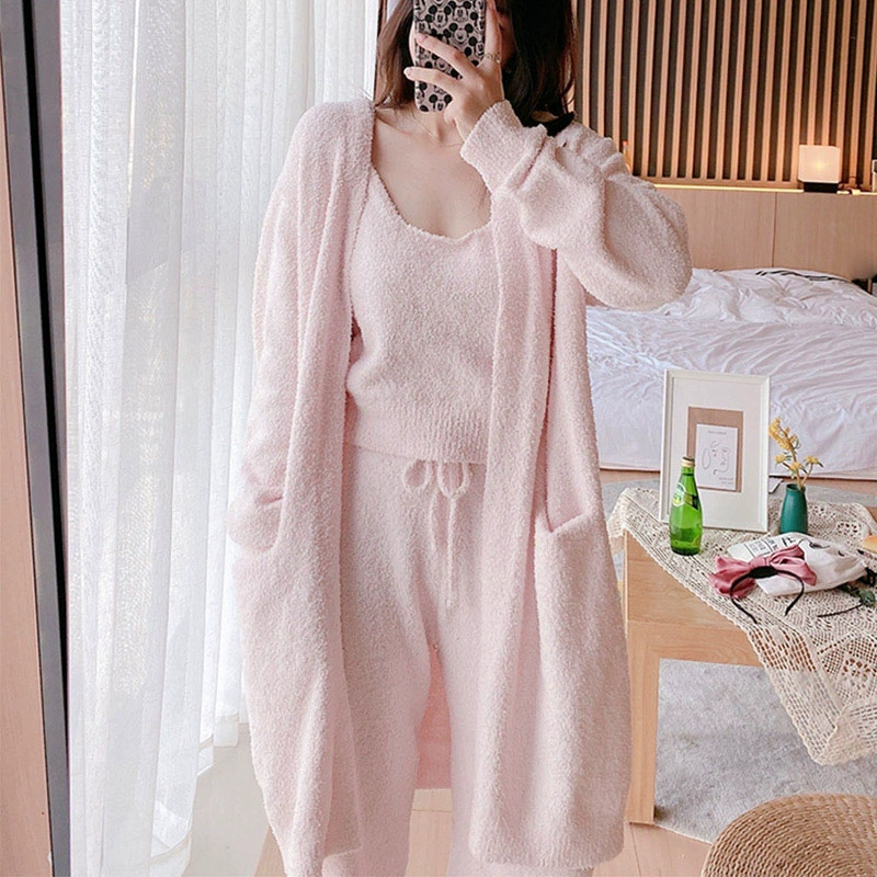 نصف الجوانب المخملية بيجاماس Ms. Spring and Winter 2024 New Plus Velvet Clor Coral Velvet Robe Home Service Three -Pite Set