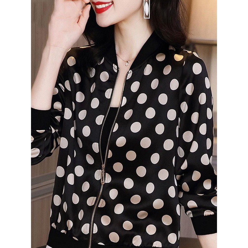 البيسبول جديد المرأة الربيع أفضل 2022 سترة غير رسمية سترة البولكا الأسود بأكمام طويلة معطف قصير الحرير