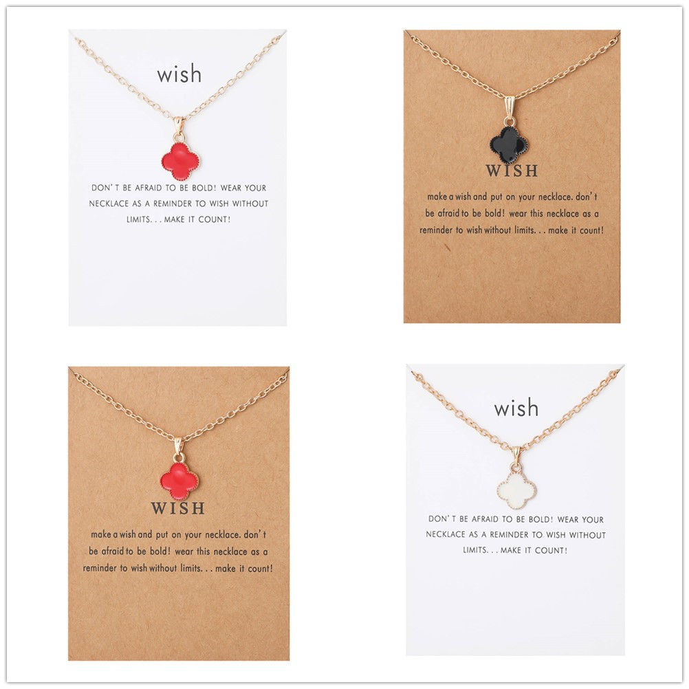 عبر الحدود بطاقة الرغبات قلادة المرأة الخفيفة الفاخرة أربع أوراق البرسيم قلادة النمط الأوروبي والأمريكي سلسلة الترقوة Chocker مجوهرات