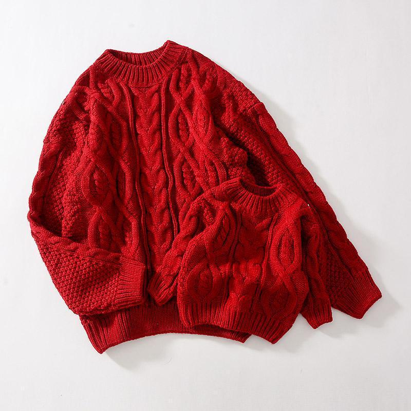 سترة الوالدين والطفل فستان الوالدين والطفل عائلة مكونة من ثلاثة معطف أحمر للعام الجديد ملابس عيد الميلاد أربعة شارع مقلي ديكور المنزل الشتاء