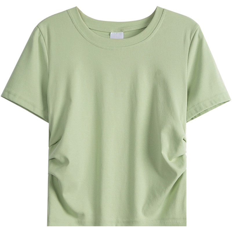 تي شيرت كتف بتصميم مطوي باللون الأخضر النعناعي للنساء للصيف والفتاة الساخنة قميص سفلي بأكمام قصيرة وقميص أبيض