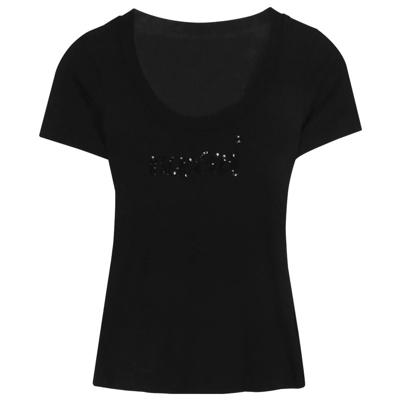 حرف صيفي قصير الأكمام بتصميم تنحيف الخصر مع الترتر