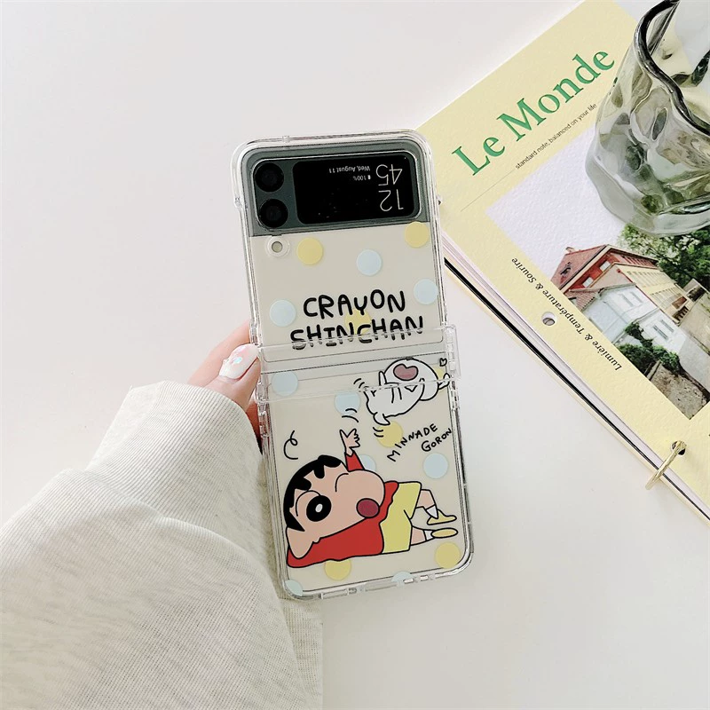 جراب هاتف محمول لطيف Crayon Shin-chan Samsung zflip6 شاشة قابلة للطي zflip5 غطاء واقي مفصل شامل zflip4 جراب شفاف مضاد للسقوط ZFlip3 رسوم متحركة إبداعية W24FLIP غطاء قلاب للرجال والنساء
