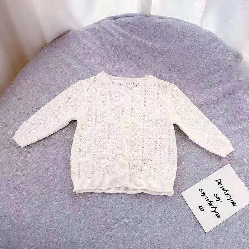 طفل تكييف الهواء قميص الفتيات الصيف رقيقة أعلى الأطفال معطف طويل الأكمام الفتيات القطن سترة محبوكة ملابس الحماية من الشمس