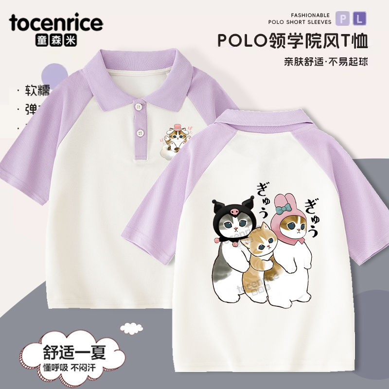 Mofusand Maofu الفتيان والفتيات قصيرة الأكمام تي شيرت 2024 جديد قميص بولو الأطفال الصيف أعلى الصيف Lar