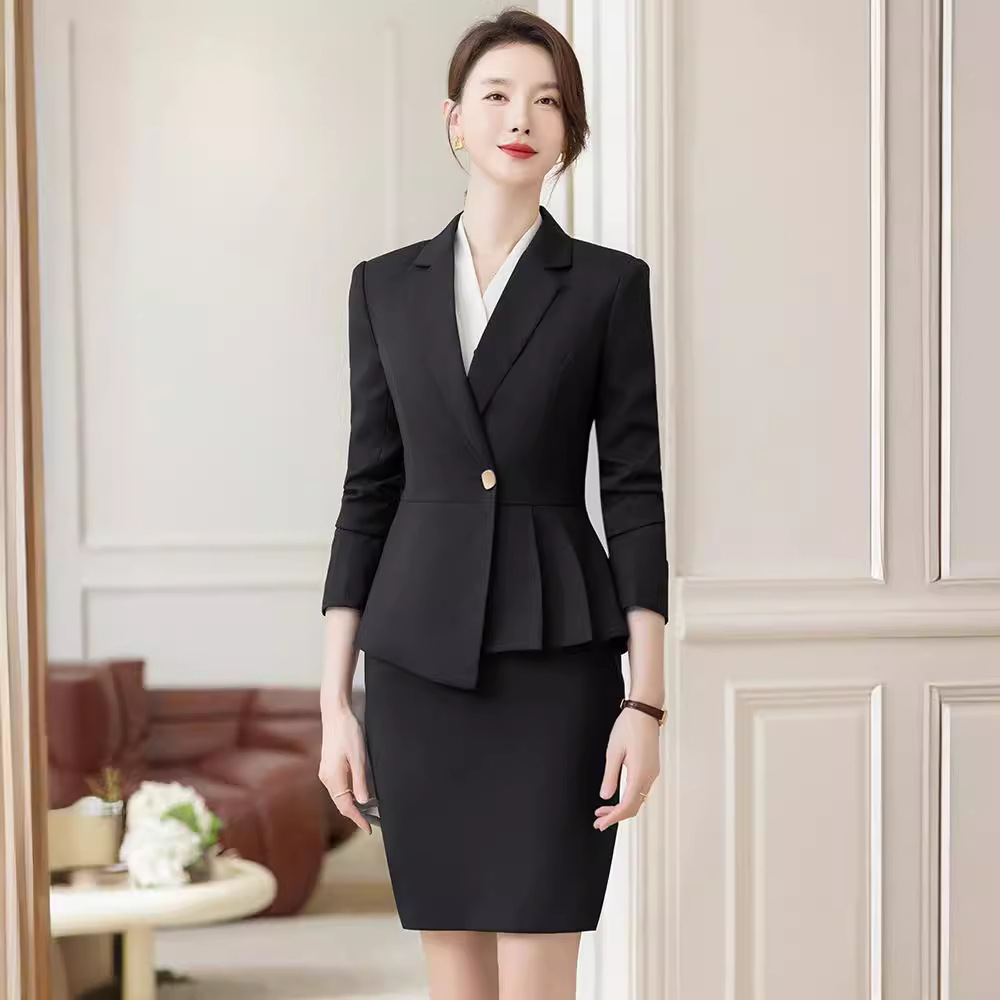 بدلة احترافية راقية OL للسيدات للخريف والشتاء بمزاجية زرقاء مدير مروحة قسم المبيعات لمتجر المجوهرات وزرة