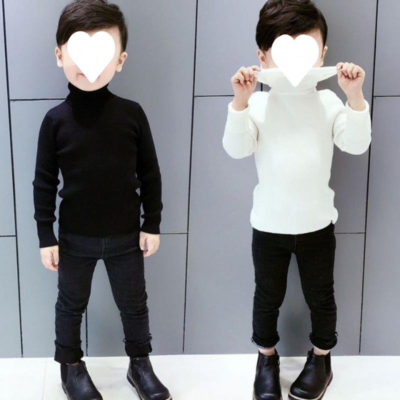 سترة الياقة المدورة للأولاد والبنات سترة مستديرة 2023 خريف وشتاء قميص سفلي جديد متوسط وكبير بالأبيض والأسود على الطراز الغربي من الشركة المصنعة المتطابقة تمامًا