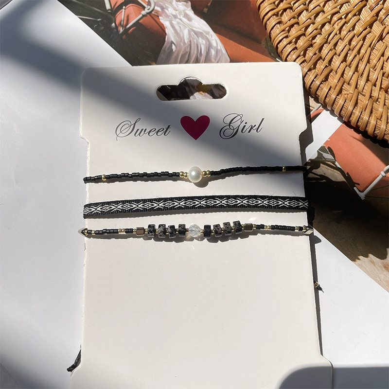 ضع داكن موري أنثى طروادة صغيرة يدوية الخرز سوار المزيج الحجر الطبيعي ومطابقة الصداقة حبل حبل النساء