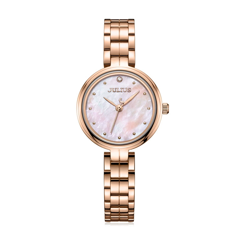 ساعة جوليوس الأصلية للنساء على الطراز الكوري، مينا محار اللؤلؤ الملون، مقاومة للماء، ساعة كوارتز أنيقة للنساء