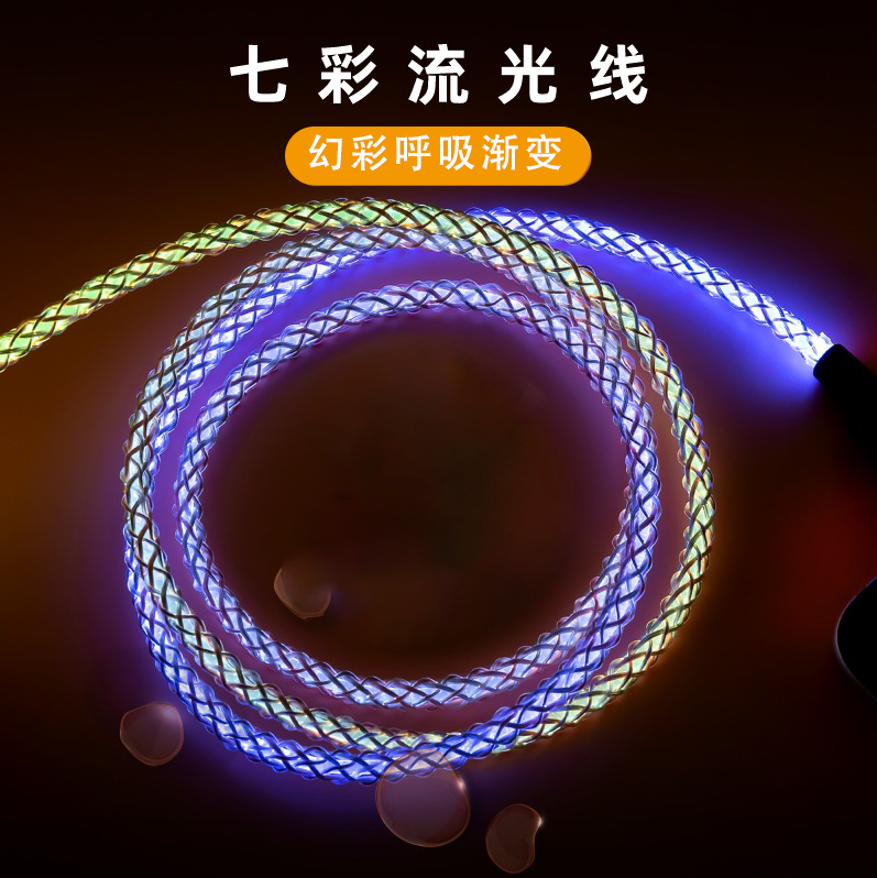 كابل بيانات RGB ملون 66 وات للشحن السريع كابل شحن متدرج للتنفس مضيء مناسب لهاتف Apple 12 Type C Android Xiaomi Huawei mate 40 الهاتف المحمول Baidu carlife ضوء جو السيارة