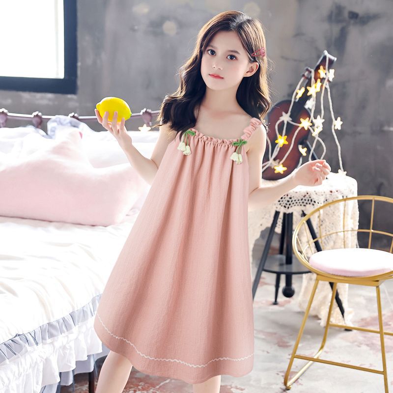 بيجامة نسائية صيفية بحزام WZXSK من القطن بشاش فقاعي بدون أكمام للسيدات فستان صيفي لطيف