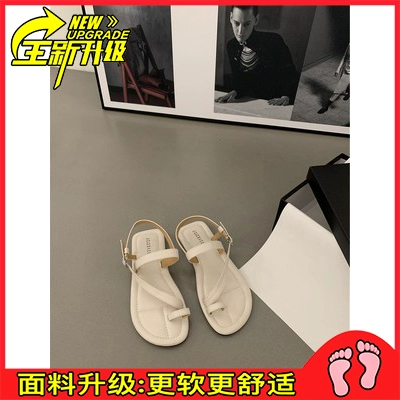 صندل أنيق ذو نعل مسطح بتصميم خرافي مع تصميم سحب عند الأصابع