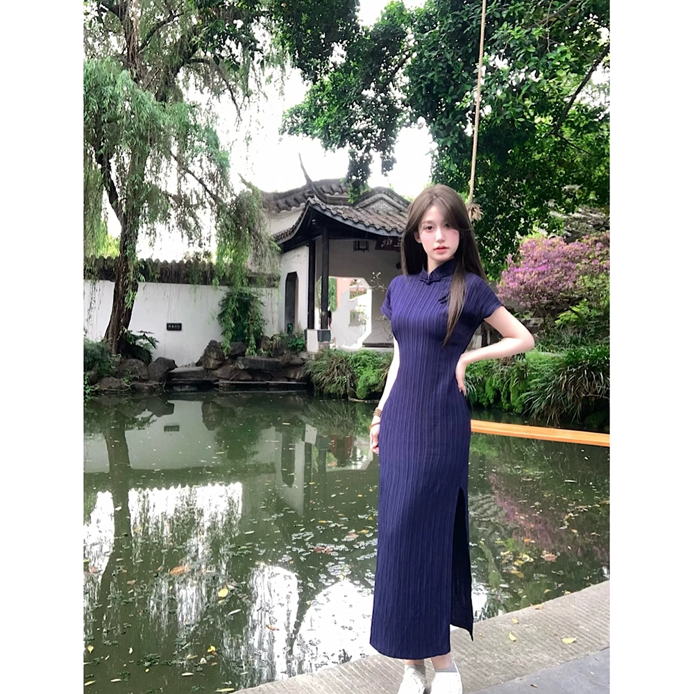 تنورة شيونغسام ذات أكمام قصيرة على الطراز الصيني الجديد تغطي المؤخرة