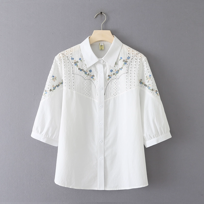 2023 الصيف للسيدات الجديد من أفضل 200 كاتشيات الدهون ملم جوفاء مطرزة بأكمام ثلاث أرباع قميص كبير الحجم