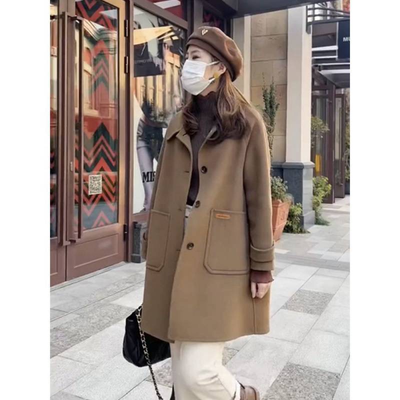 معطف من الكشمير على الوجهين للنساء من الصوف 2023 معطف جديد للمشاهير على الإنترنت TikTok للخريف والشتاء معطف صوفي على الطراز الغربي