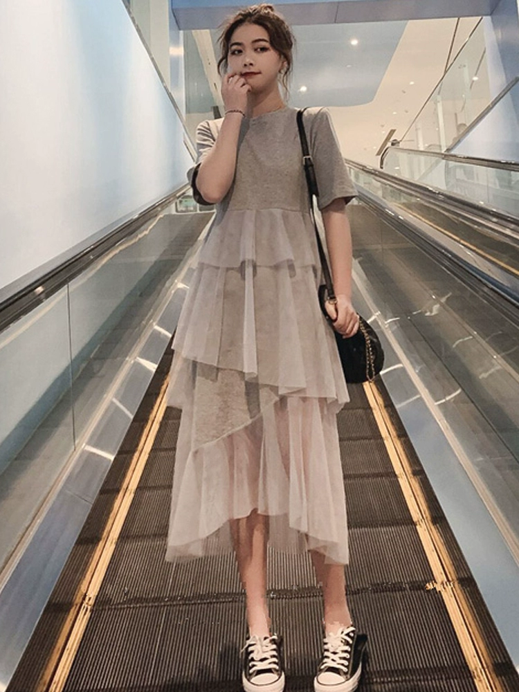 سوبر خرافية الصيف غير النظامية تنورة كعكة قصيرة الأكمام شبكة