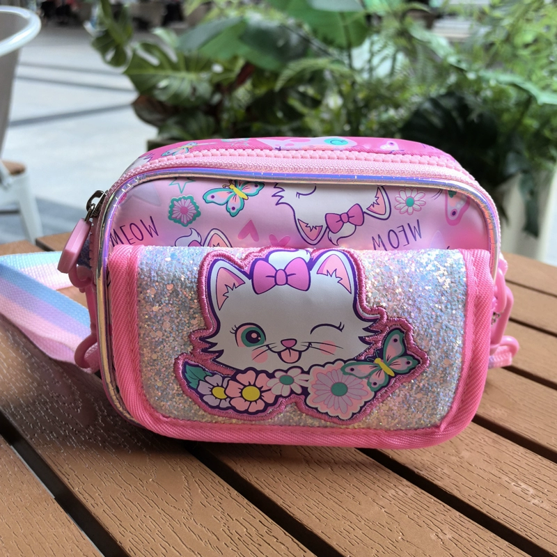 حقيبة كروس صغيرة للأطفال على شكل عملة معدنية للأميرة مربعة الشكل وحقيبة كروس لطيفة على شكل شخصية كرتونية وحيد القرن لرياض الأطفال صغيرة