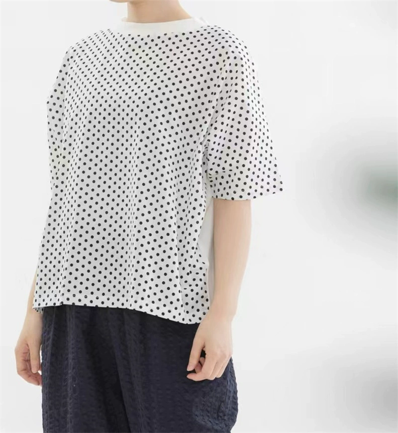 موقع رسمي جولة نقطة قصيرة -t -sleeved typle 2024 الصيف جديد جولة الرقبة الطيور الظهر الطائر الصغير تطريز حجم رفيع وجسم رفيع