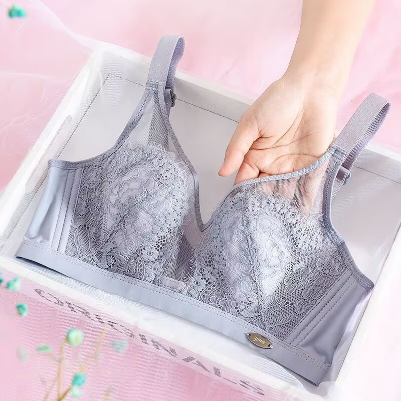 ملابس داخلية دانتيل رفيعة للغاية للسيدات صيفية بدون حلقات فولاذية كأس أذن أرنب Paramary صدر كبير حمالة صدر فرنسية صغيرة