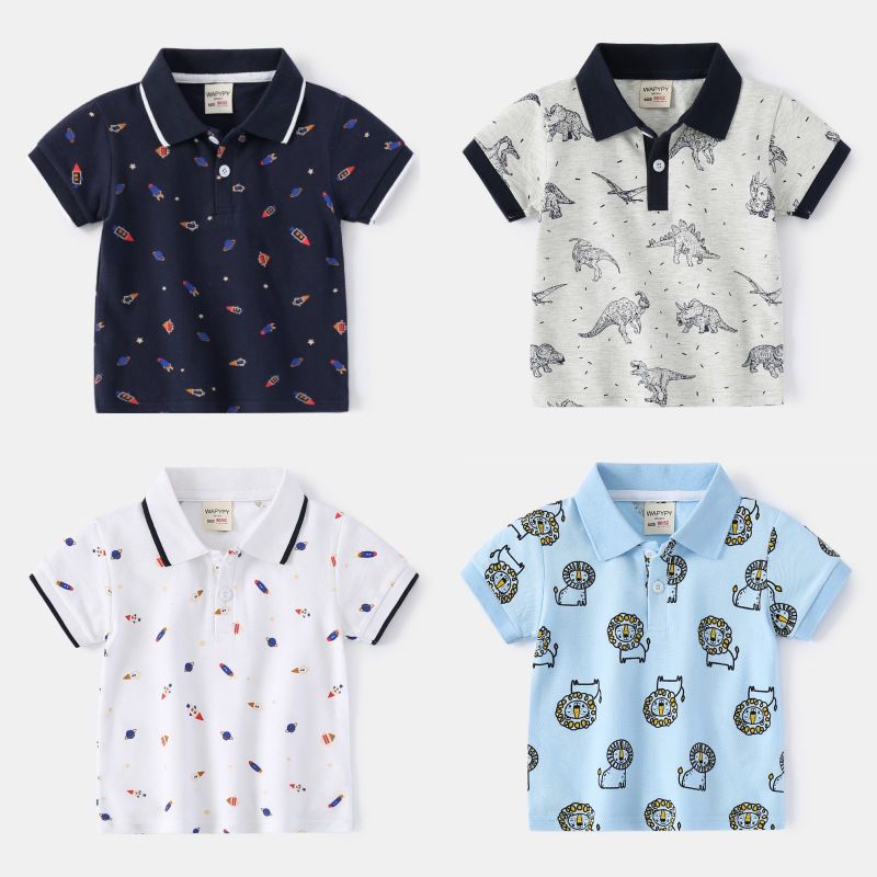 قميص بولو بأكمام قصيرة للأولاد 2024 ملابس أطفال صيفية للبيع بالجملة تي شيرت بأكمام قصيرة للأطفال مطبوع بالكامل ملابس أطفال مد