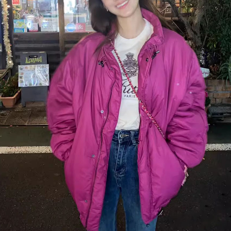 النمط الفرنسي 24 شتاء جديد ملابس نسائية موضة الياقة المدورة الرباط كل مباراة دافئة معطف مبطن بالقطن كم طويل رقيقة معطف مبطن بالقطن
