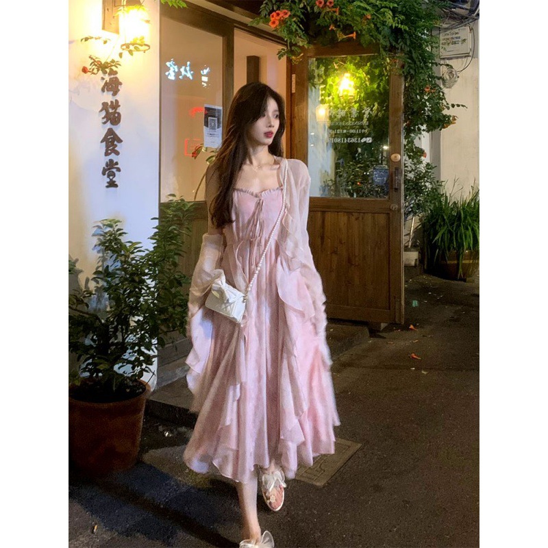 الخوخ الحلو yikett “سيدة مكسورة” صيف جديد فستان الحمالة الخامس الرقبة فستان خرافية الحلو