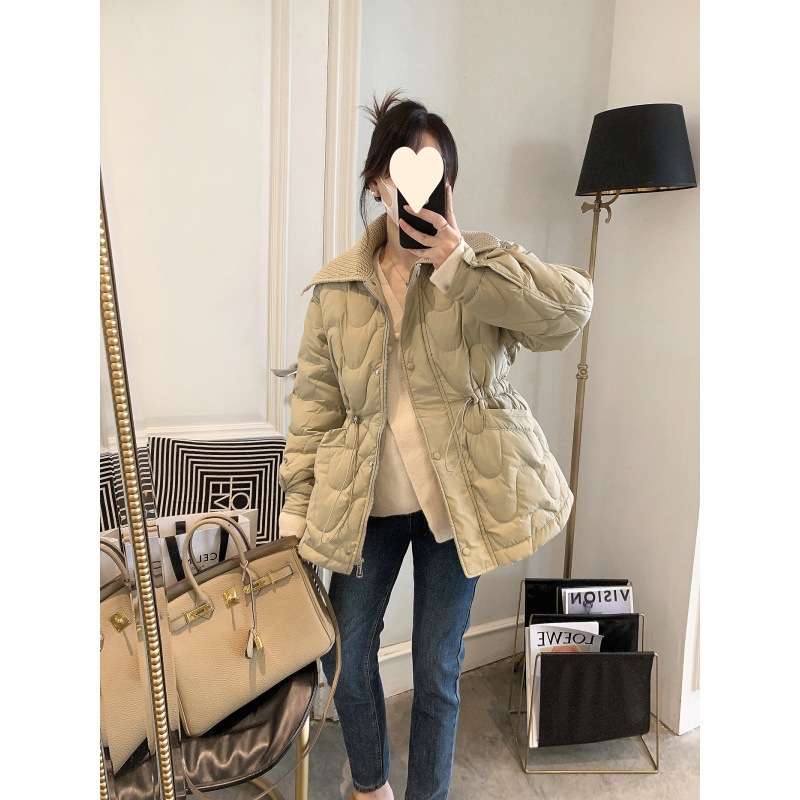 معطف نسائي شتوي جديد عصري على الطراز الكوري متوسط الطول بخصر ضيق محبوك معطف نسائي ضيق الخصر للتخسيس معطف صغير