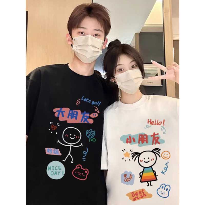 فستان زوجين مختلفين، قميص صيفي بأكمام قصيرة، تصميم جديد من القطن الخالص، مطبوع على الموضة، برقبة دائرية