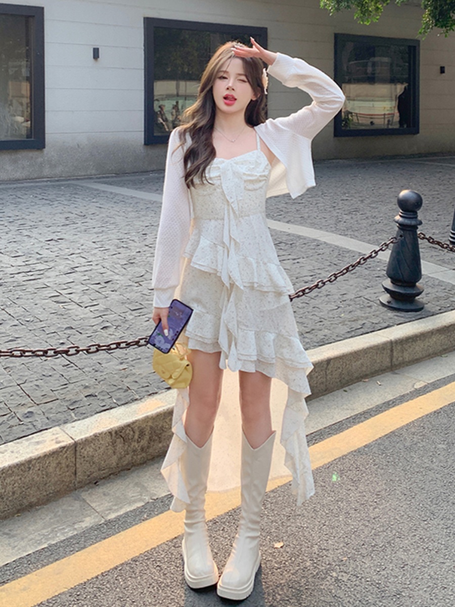بدلة نسائية قوية ومرحة لصيف 2024 جديدة بدون أكمام مع فيونكة تنورة ذات ثنيات طقم مكون من قطعتين