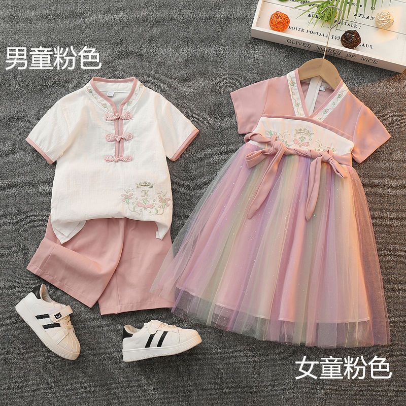 Hanfu الأطفال الصيف نمط الأولاد والبنات النمط الصيني تحسين تانغ دعوى رياض الأطفال المدارس الابتدائية أداء الملابس العرقية لمدة ستة أيام