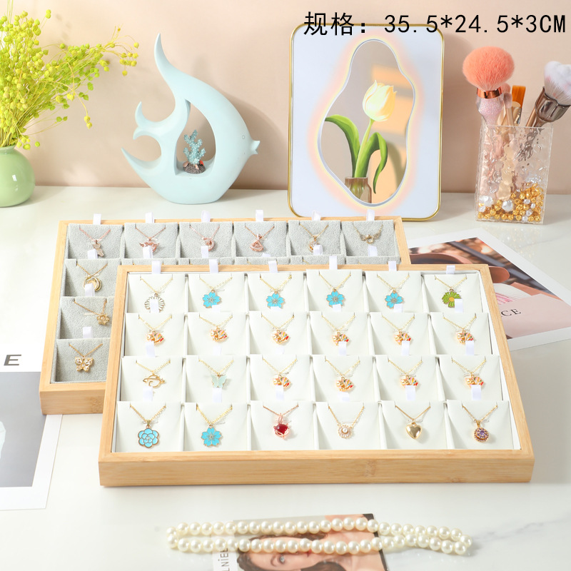 المصنع مباشرة خشب الخيزران 24 شبكة قلادة لوحة صينية عرض المجوهرات المنزلية الرائعة متعددة الوظائف عرض الدعائم