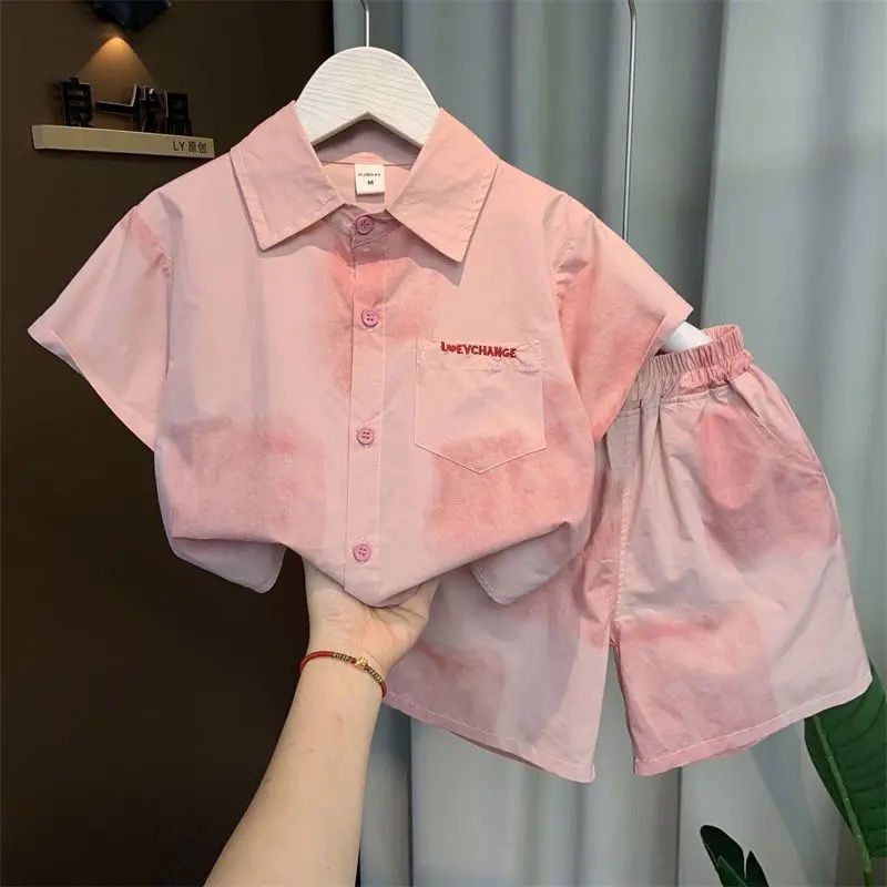 فستان صيفي للأطفال الأولاد بدلة قميص بأكمام قصيرة 2024 موضة جديدة صغيرة ومتوسطة الحجم للأطفال ملابس صيفية رقيقة عصرية