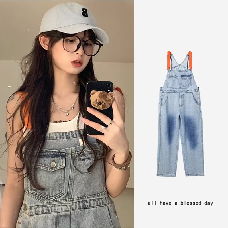 سراويل جديدة فضفاضة غير رسمية من قماش الدنيم بتصميم فتاة مثيرة للغاية للنساء لربيع 2024 وتصميم متدرج سراويل واسعة الساق