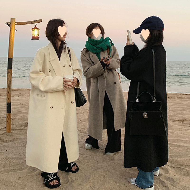 معطف صوفي متوسط الطول من المخمل على الوجهين لخريف وشتاء 2024 معطف صوفي نسائي صغير من هيبورن