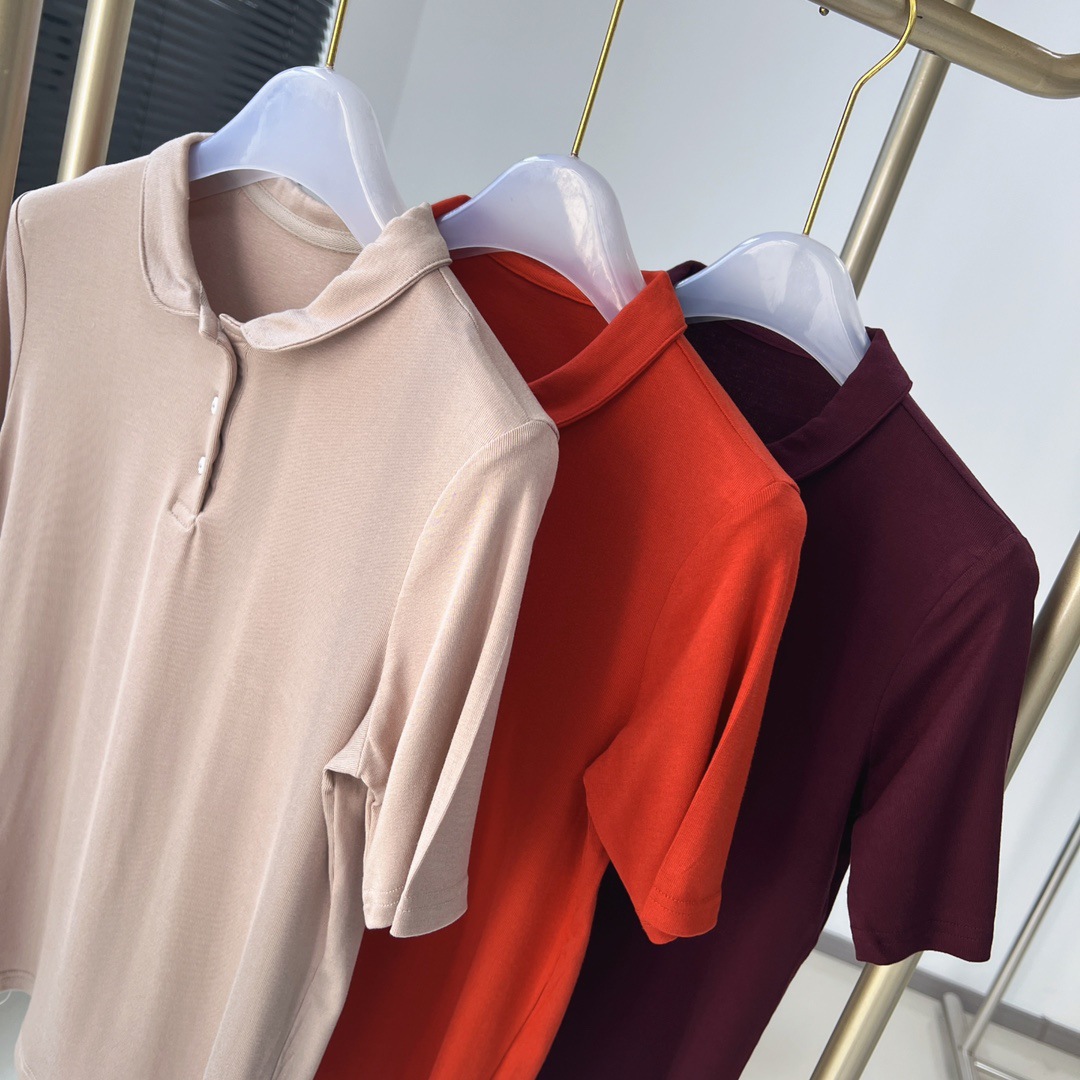 24 تي شيرت صيفي للسيدات بمزاج كاجوال من القطن المضلع بياقة بولو صديق للبيئة يمتص الرطوبة والنفاذية