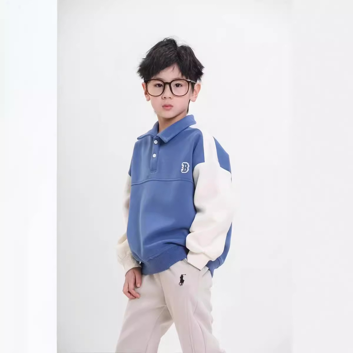 24 الخريف جديد الفتيان والفتيات الترفيه الأزياء الرياضية B القياسية POLOT تي شيرت