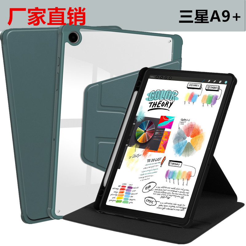 حافظة واقية لهاتف سامسونج A9 بالإضافة إلى فتحة قلم شاملة من الأكريليك الدوارة 8.7 حامل جلد شفاف ورقيق للغاية
