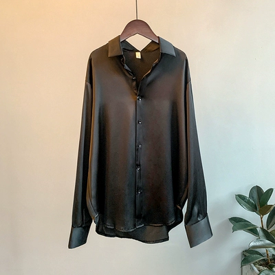 قميص شيفون ساتان الأكمام الطويلة حمض الأسيتيك الرأسي