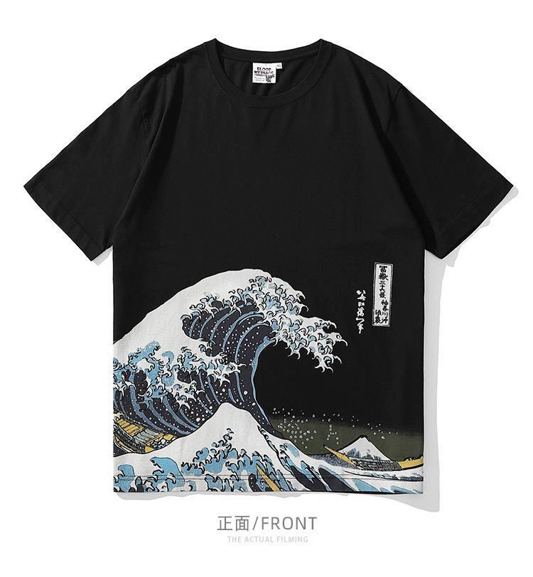 Tide Brand Kanagawa Short -Sleeved Ukiyo -e -Top Top